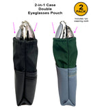 (2 PACK) JAVOedge 2 in 1 Double Eyeglasses Pouch Large Size Storage Case Fits Most Glasses and Sunglasses for Men / Women