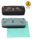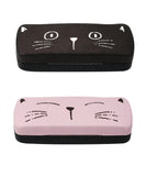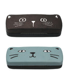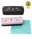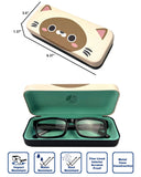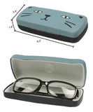 [2 PACK], JAVOedge Multi-Color Cute Cat Face Printed Hard Clamshell Eyeglass Storage Case with Microfiber Cloth
