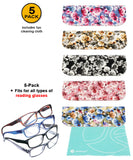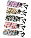 [3 PACK / 5 PACK], JAVOedge Floral Collections Ultra Light Soft Pouch Eyeglass Storage Case w/Microfiber Eyeglass Cloth