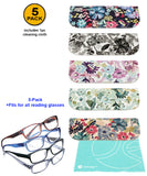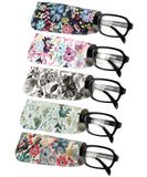 [3 PACK / 5 PACK], JAVOedge Floral Collections Ultra Light Soft Pouch Eyeglass Storage Case w/Microfiber Eyeglass Cloth