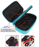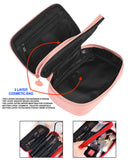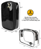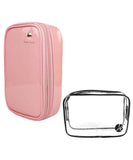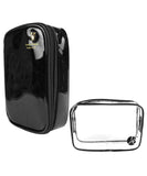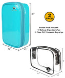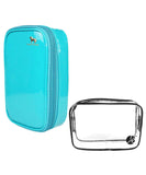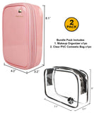 JAVOedge (2 PCS SET) Bold Colored 2 Layers and Double Zipper Cosmetic Makeup Brush Travel Bag W/ Clear PVC Zipper Bag