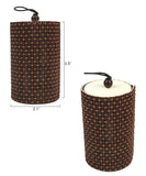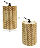 Keep your rings organized while traveling with this cute and compact bamboo jewelry box. The long round shaped case features a bamboo exterior. The case has a lid that can be completely pulled off by the top string. The bamboo on the outside gives the case a unique look that is perfect for home and for travel. The case is the perfect accessory to store your jewelry in. The compact size makes the case perfect to travel with. The case is also perfect to use at home. Cute and compact, this bamboo jewelry case is the perfect travel accessory for your rings or earrings.