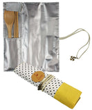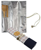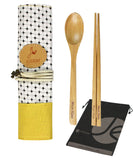 Ideal for everyday use this wooden utensil set comes with a spoon and chopsticks. This travel utensil set comes in a silverware holder. The pouch lets you carry the utensils around in a sanitary way. The wooden utensil set is durable but lightweight. The compact size is easy to travel with and perfect to take to work, camping, traveling, etc. Always have a set of utensils on hand to use with this wooden chopstick and spoon set with silverware holder.