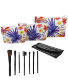JE Bundle (3 Piece Set) Cosmetic Tropical Bags and (7 Piece Set) Makeup Brush Set with Travel Bag