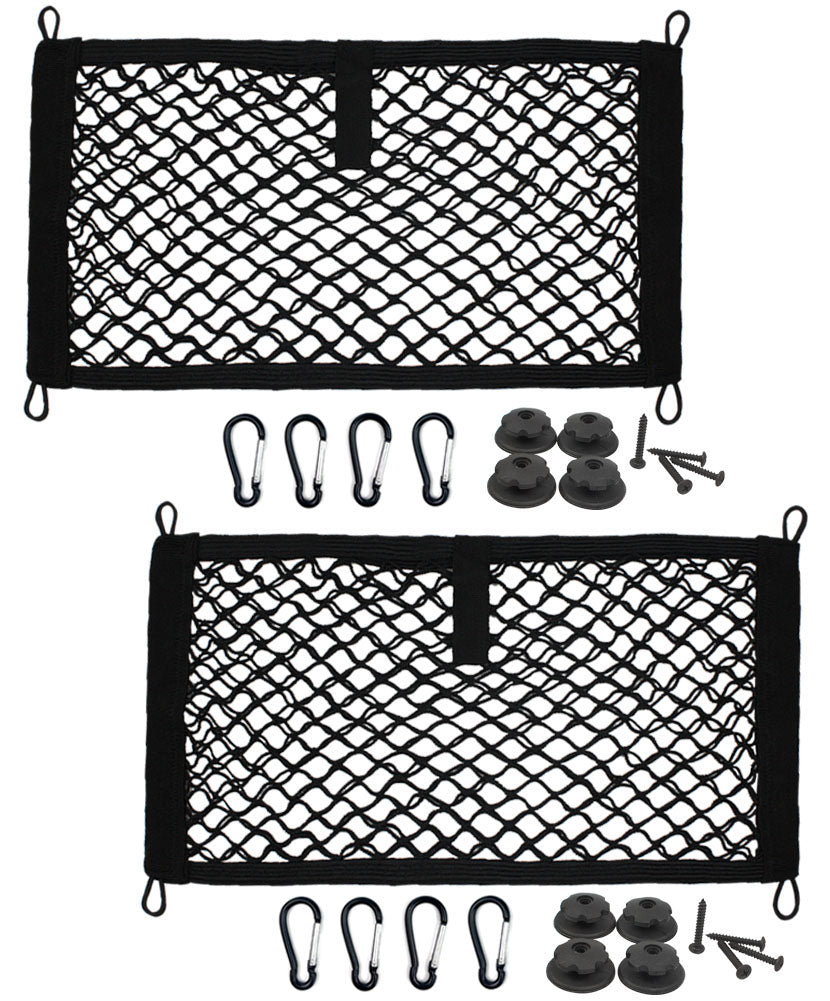 • [2 PACK], JAVOedge Cargo Net For Trunk, RV, Boats Storage Mesh Pocket Net with 4 Mounting Screws and Built-in Hooks