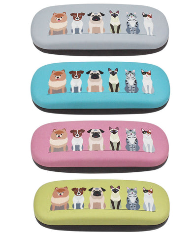 [2 PACK], JAVOedge Multi-Color Cute Cat Face Printed Hard Clamshell Eyeglass Storage Case with Microfiber Cloth